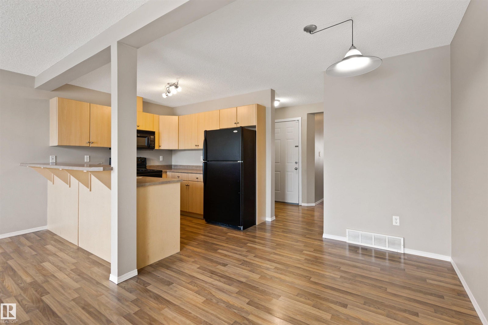 NO CONDO FEES! Welcome to this amazing 1,240 sqft half-duplex, located in the family-friendly community of Hollick-Kenyon. The main floor is a bright & functional living space perfect for everyday living & entertaining. The kitchen has plenty of cabinet space & an eating bar. The living room has sliding doors out to the back deck- perfect to enjoy a cup of coffee. A 2pce bath completes the main floor. The 2nd floor features 3 bedrooms & a main 4pce bathroom, making this an ideal family home. The partially finished basement adds extra living space & offers great potential for a rec room, home office, gym or future development. A single attached garage (9'8" x 19'10") provides convenient parking & additional storage. Situated close to parks, schools, shopping, public transit & w/ quick access to major routes, this home offers both comfort & convenience in a well-established north Edmonton neighborhood.