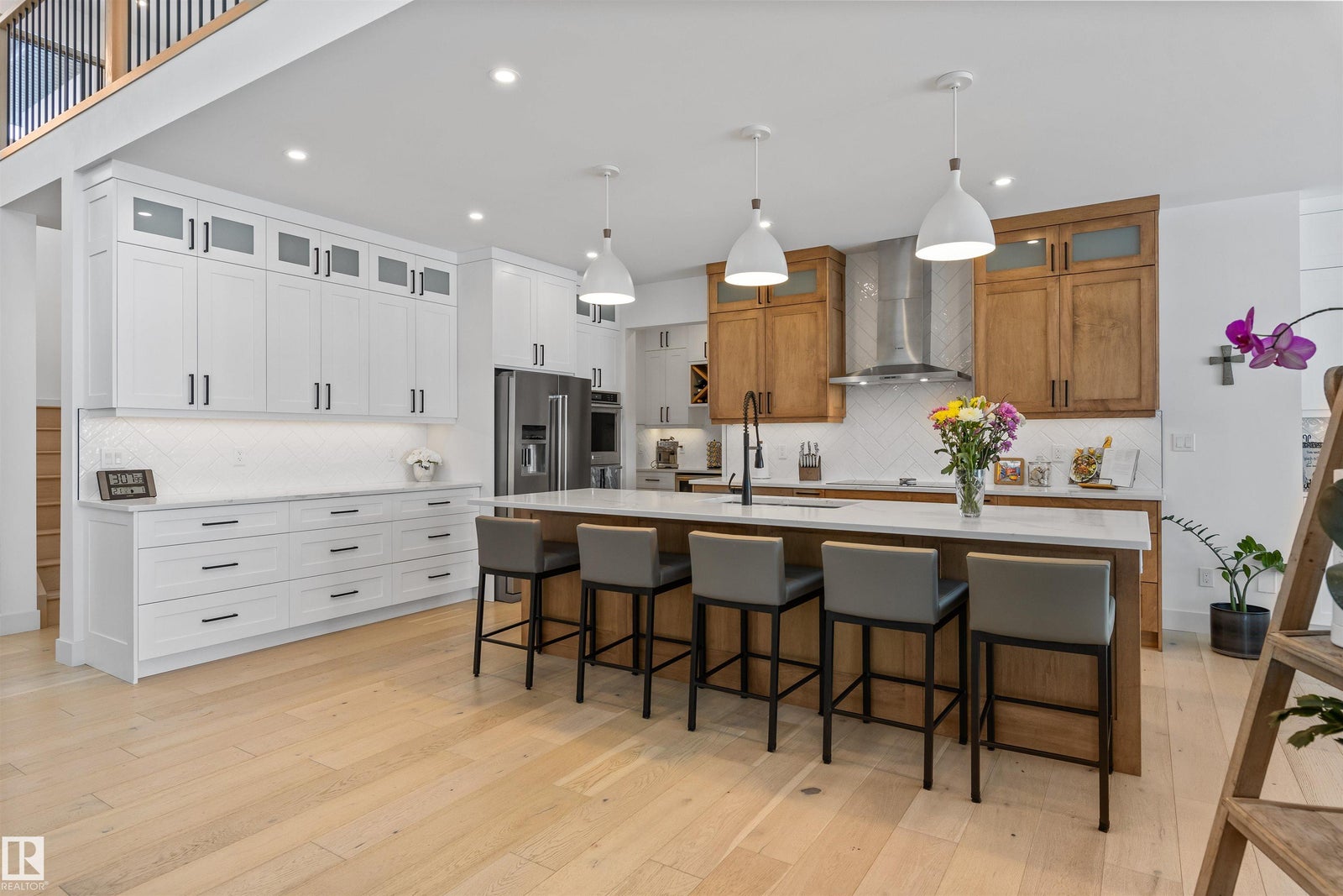Located at end of a private cul de sac, in the exclusive acreage development of River’s Gate discover this sensational bungalow. The foyer opens to soaring 2 floor ceiling heights w/ stunning ENGINEERED HARDWOOD FLOORING that flows through most of the main floor. There is a office/den in the front of the home. The kitchen, dining & living room all flow effortlessly into a cozy space for family while being able to accommodate large scale gatherings. The living room has a gas f/p & a full wall of sliding doors onto the COVERED BACK DECK. The kitchen has an abundance of pot/pan drawers, a huge eating bar island & a stunning butlers pantry. The primary bedroom is on the main floor w/ a spa like 5pce ensuite w/ custom shower & a spacious walk in closet. This home has a partial lofted style 2nd floor w/ 2 bedrooms, a bonus room & a 5pce bath. The FULLY FINISHED basement has a large rec room w/ wet bar, flex room, 2 large bedrooms & a 4pce bath. A HEATED oversized triple attached garage completes this property!